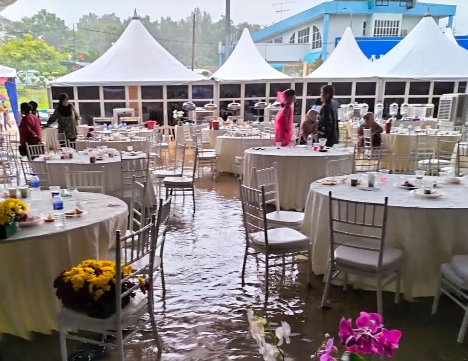 (居銮14日讯)太尴尬了!柔佛苏丹依布拉欣今午前往居銮湖滨公园大钟楼,与民茶会,没想到陛下离开后,会场沦为“水上茶会”,与会者被迫涉水离场。