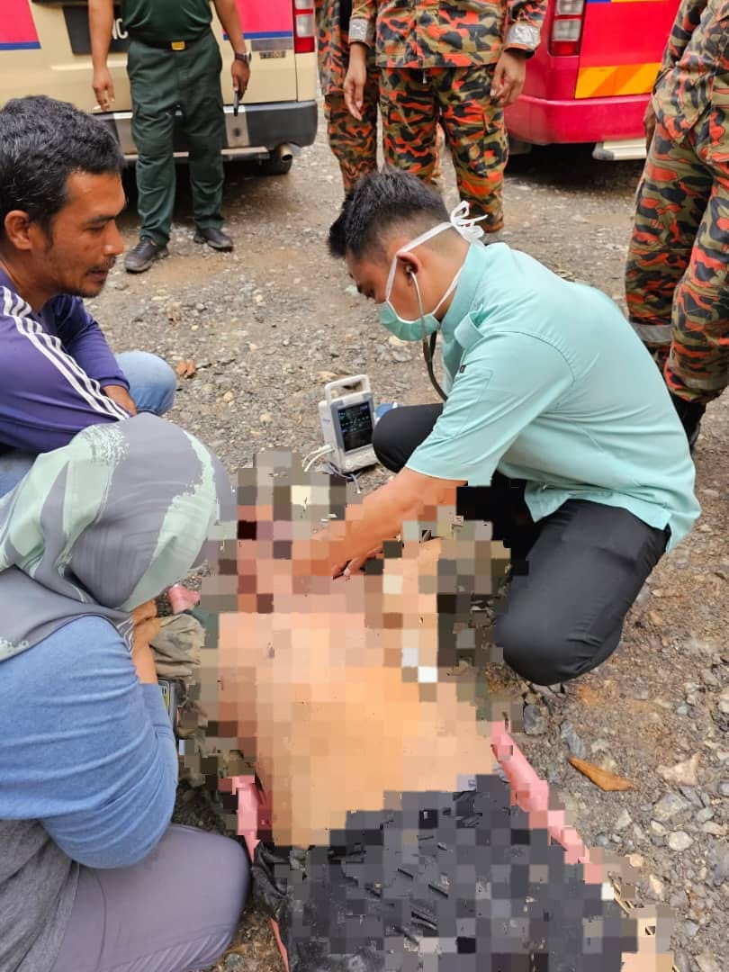 拉美士消拯局行动指挥官Hairisyah Wahid指出,当昨午2时24分接获999紧急电话投报,便派出7名消拯员前往施援。