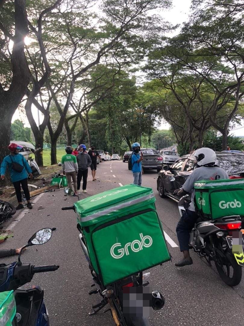 他说,死者是33岁华裔男,骑驶Grab送餐摩哆,因车祸中伤及头部和身体,当场毙命。另外Honda(本田)轿车司机受伤送入古来医院治疗。