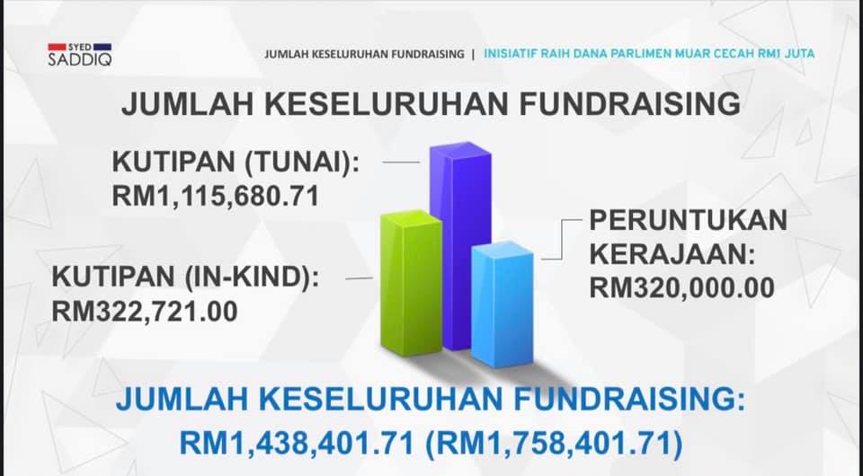 赛沙迪也说,加上其他活动和援助工作中,总筹得143万401令吉71仙。