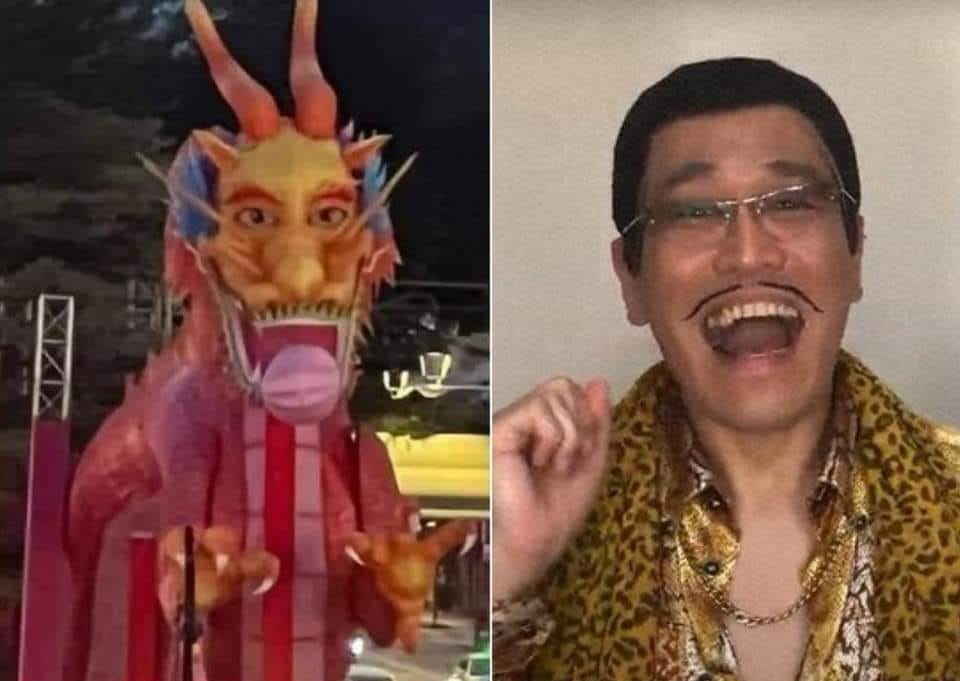 被议论的是一张正脸拍摄祥龙的照片,有网民指神似脸,有像像已故港星吴耀汉,也像日本的PPAP(Pen-Pineapple-Apple-Pen)大叔。