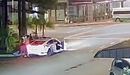 从网上流传视频可见,警方抵达后,手中像似拿着裤子,将裸男制伏后,便替对方穿上,最后带上警车离开。