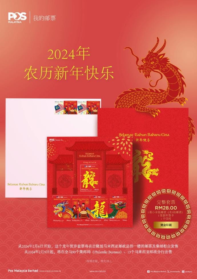 今年推出的龙年限量版邮票,全套28令吉,附有: