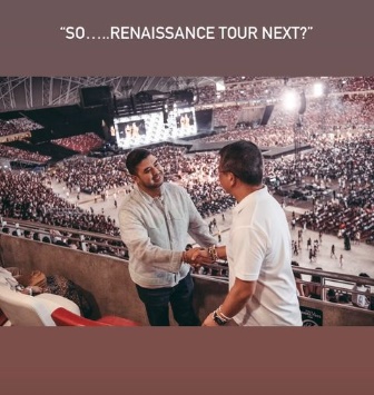 二王子也演唱会上,也与新加坡文化、社区及青年部长兼律政部第二部长唐振辉碰面,更打趣在两人握手照片写上“So…Renaissance Tour Next?”,在问下一个是否美国流行乐天后碧昂丝(Beyonce)的《潮流复兴》(Renaissance)演唱会。