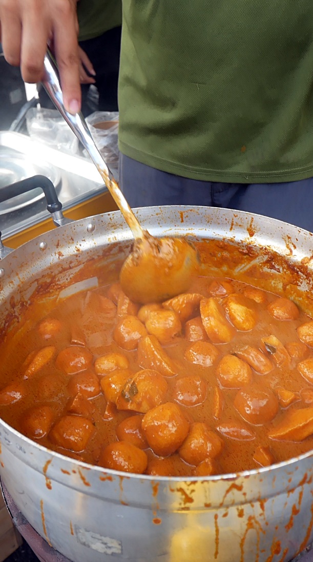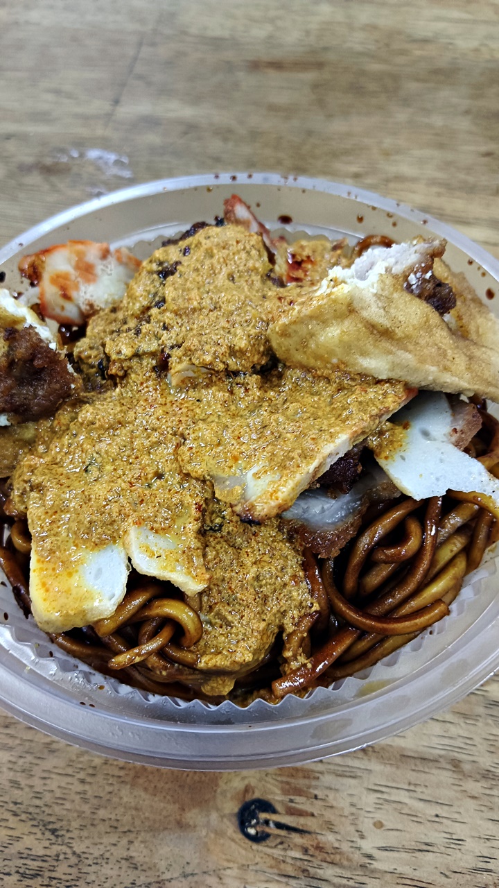 “猴子面”有干捞、清汤和咖喱三种选择,配料有炸肉和酿豆腐,重点是老板给料不手软,让人吃得很满足。