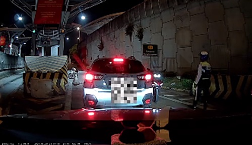无奈之下,护照又在警员手上,他们只好付了500令吉,再驶回正常车道。