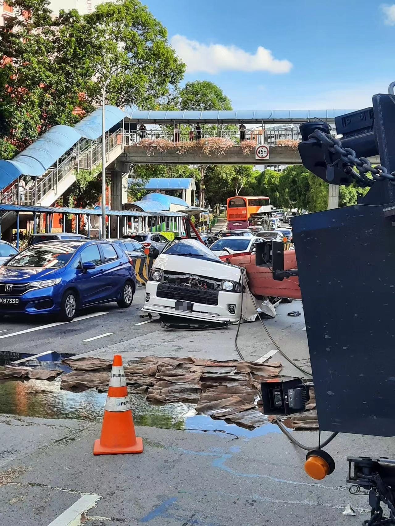 新加坡媒体指出,相信是在卸下起重机,重心不稳而侧翻,客货车司机已被送往盛港医院。