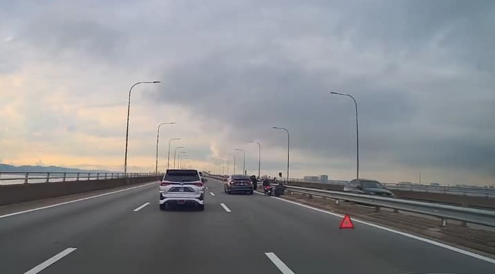 据传出消息,涉案轿车相信是在发生碰撞事故后,便停下车,同时开启双闪灯警示,并在车尾不远处放上三角架。