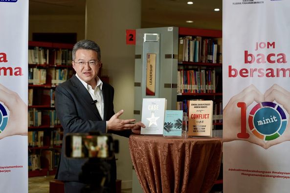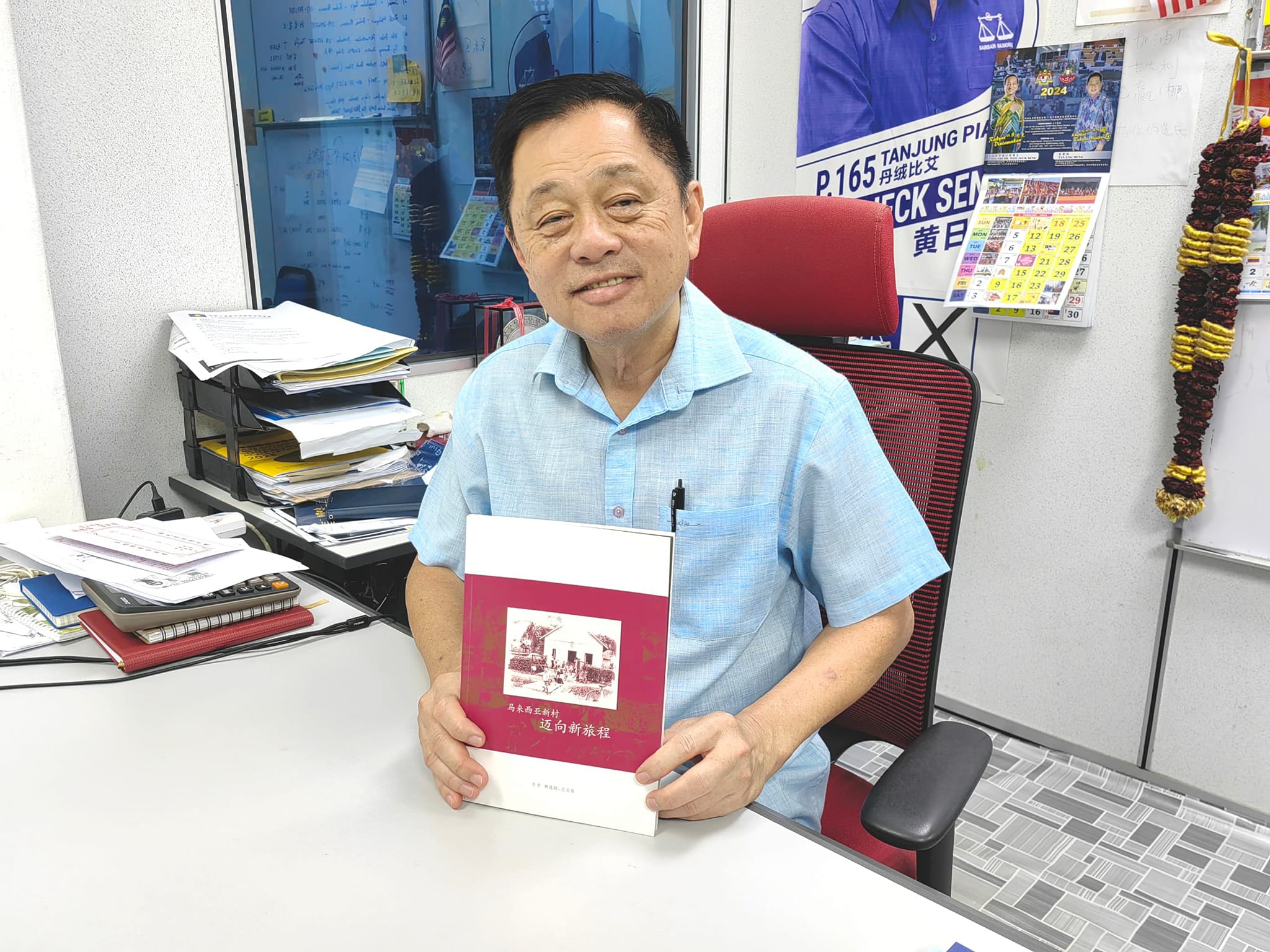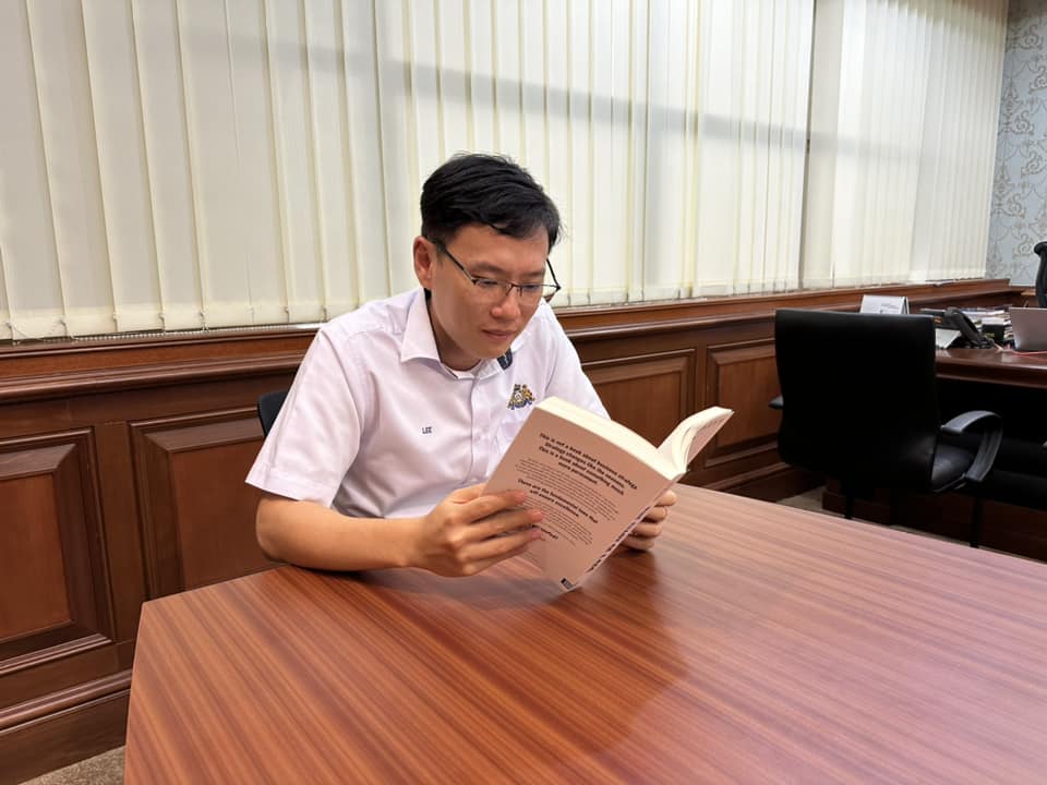 至于马华北干那那区州议员陈勇鸣,今天选读的一本书是《在马来西亚的新村》。