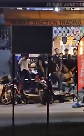 网上视频可见,男子在一间摩哆维修店前,遭一群人围殴,上身赤裸。