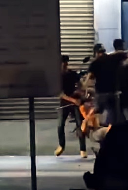 一名男子更使用类似铁枝的东西,架在男子颈部,拖曳到行人道,继续施毒手,直至男子动弹不得,奄奄一息躺在地上。