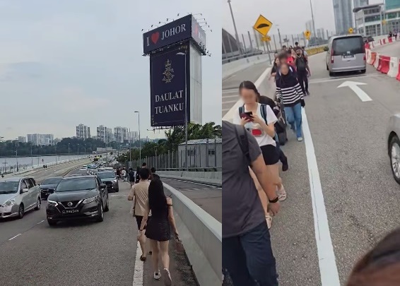 因此,许多越堤族选择不等候巴士,步行越过长堤到新加坡。