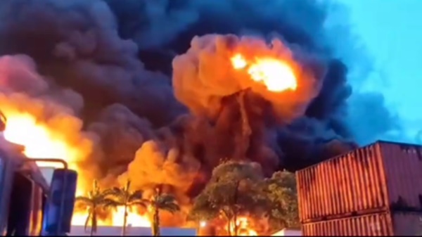 昨日傍晚发生的工厂大火,熊熊大火和滚滚浓烟,十多公里外地区都可看见,火势相尚当骇人。