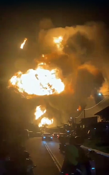 (新山28日讯)爆炸声和冲天火团骇人!五间店工业区严重大火,昨晚深夜一阵爆炸声,附近民宅感到震动,现场围观者也被眼前一幕吓着,庆幸火势最终受到控制和扑灭,唯居民忧空气受污染。