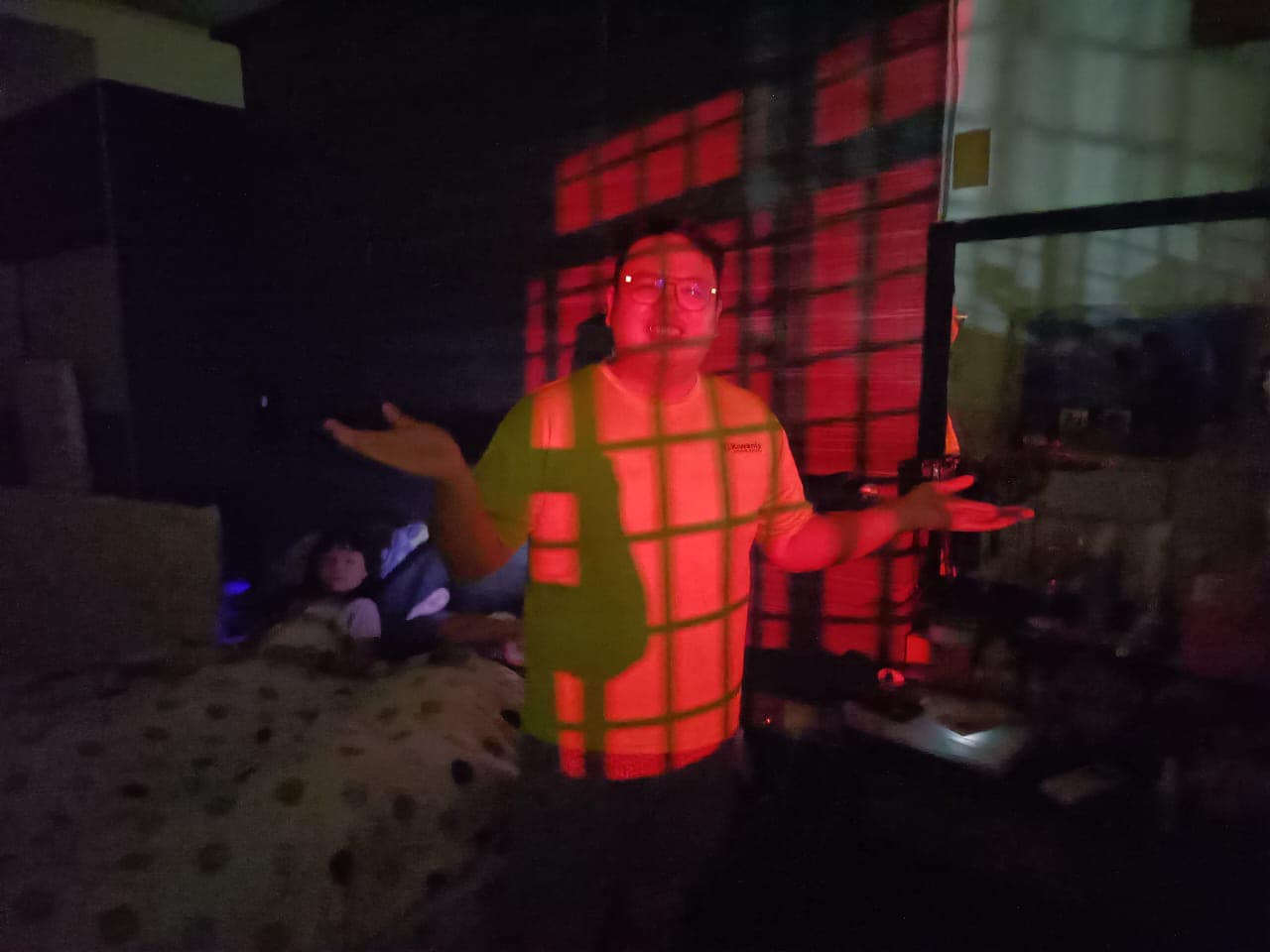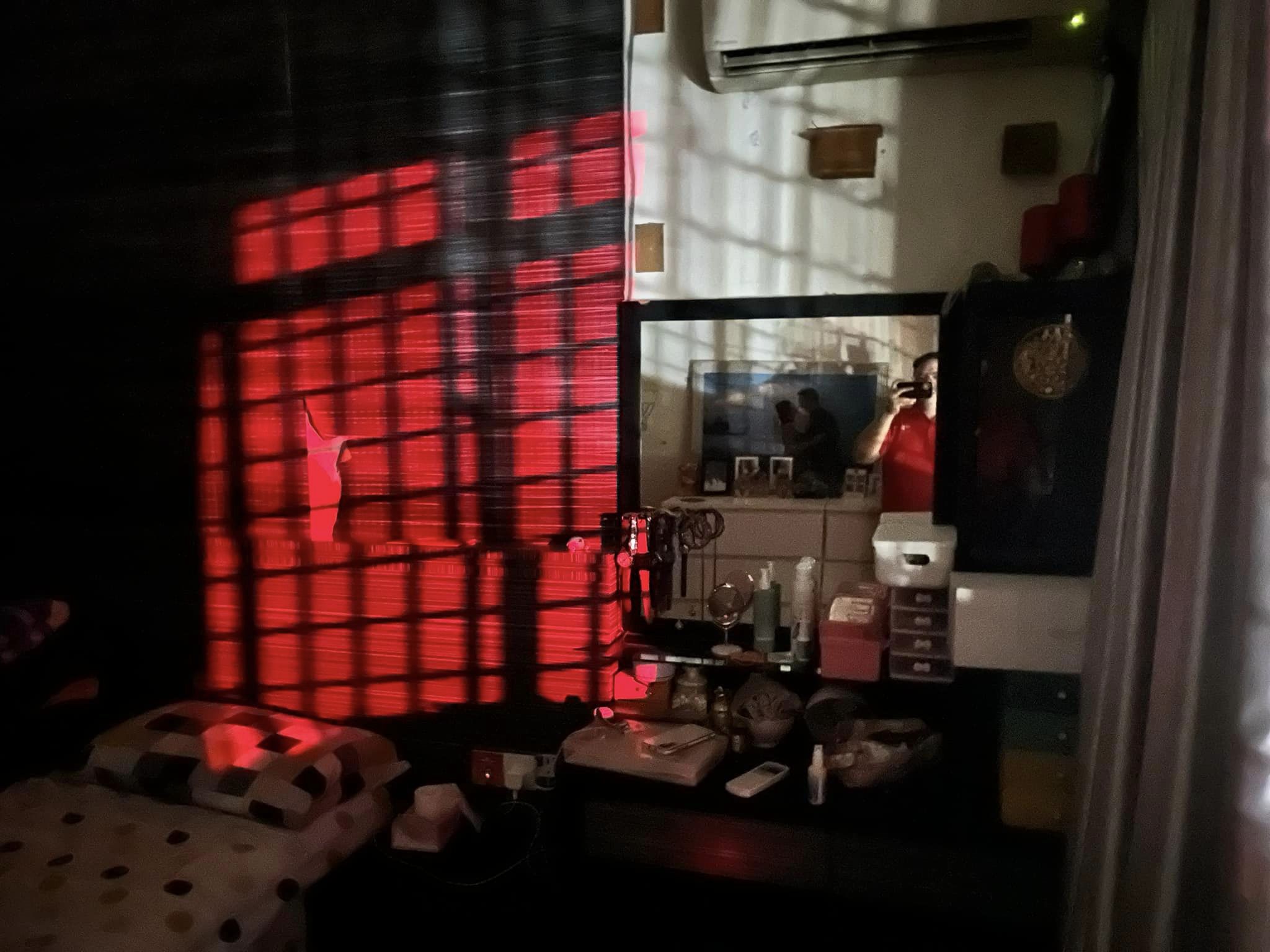 他甚至晒出屋内被红亮照耀处,而且就在床边,影响入眠。