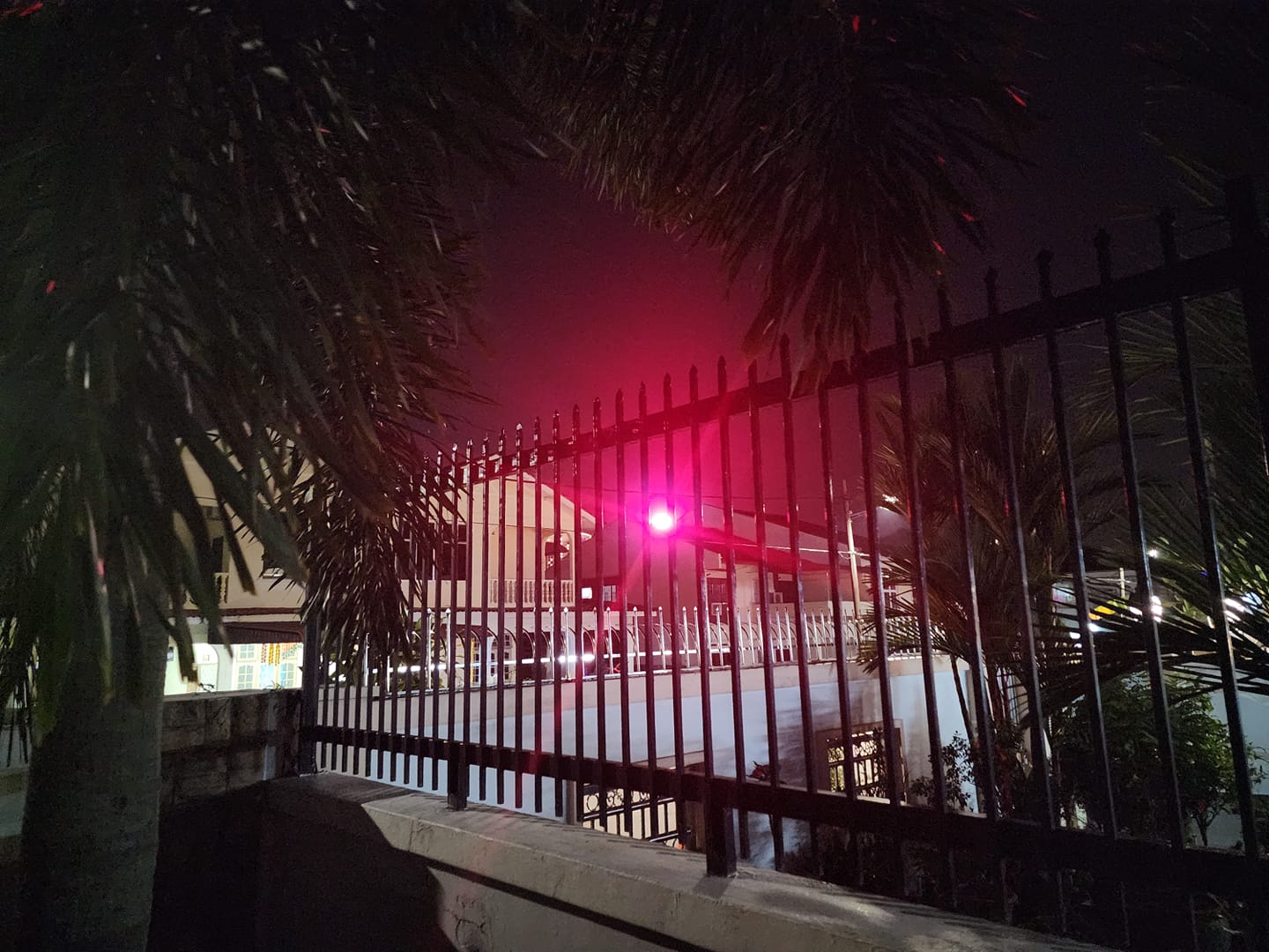 也有网友同样分享远处便看见的红光,仿佛夜空里的“红日”、《魔戒》里的索伦之眼。