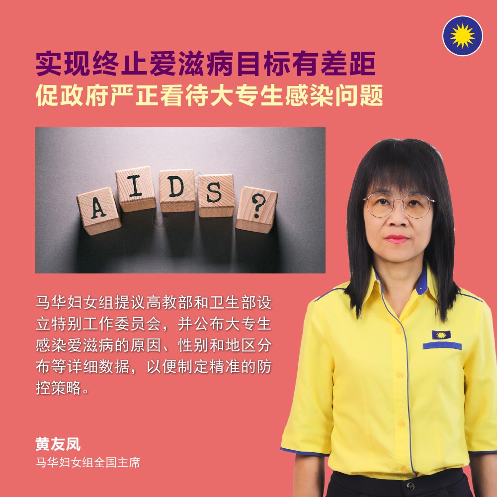 “马华妇女组敦促政府立即采取行动,采取具体措施和策略,应对大专生群体中感染爱滋病的蔓延问题。”