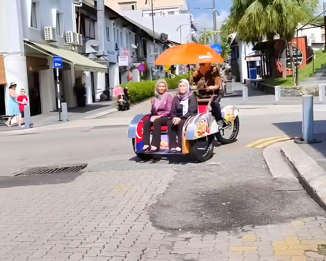 三轮车沿着直律街而行,可在Raja Maha Mariamman兴都庙、柔佛古庙,甚至黄亚福路、罗咪街和陈旭年路等历史建筑周围拍照留念。