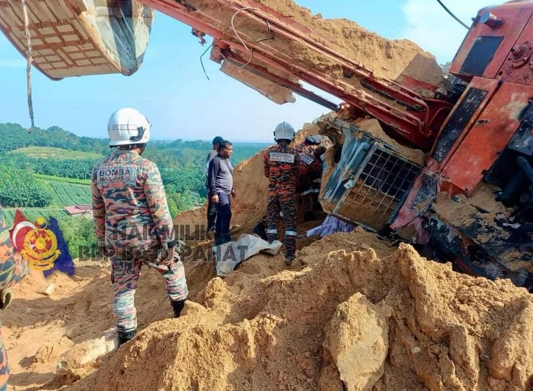 (峇株巴辖19日讯)采石场发生土崩,造成正在施工的挖掘机司机掩埋,救出时已经气绝,让期待庆祝结婚周年的妻子哭断肠。