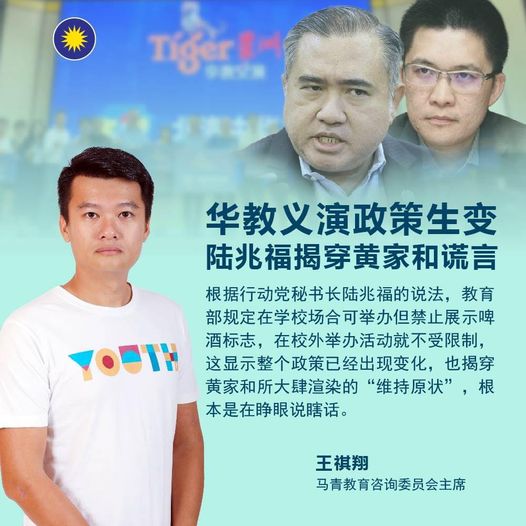 他说,在内阁会议后教育部所发布的文告,根据行动党秘书长陆兆福的说法,教育部规定在学校场合可举办,但禁止展示啤酒标志,在校外举办活动就不受限制。