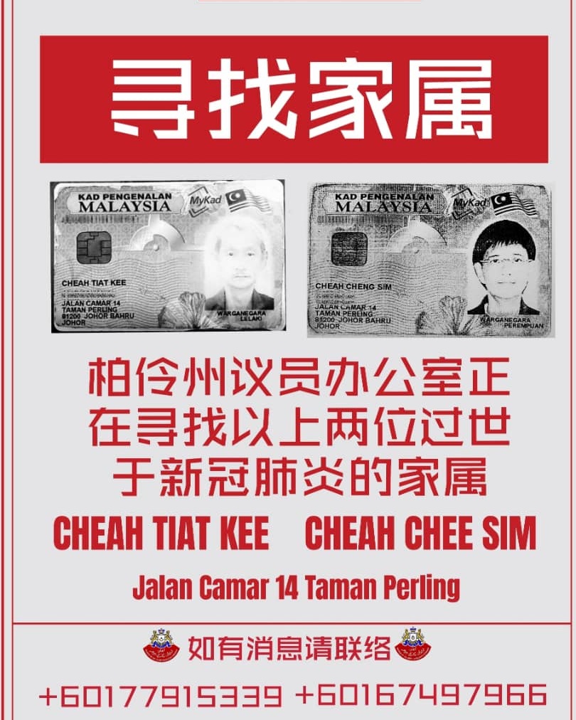 (新山10日讯)一对华裔兄妹染冠病逝世,遗体无人认领,院方进行火化!
