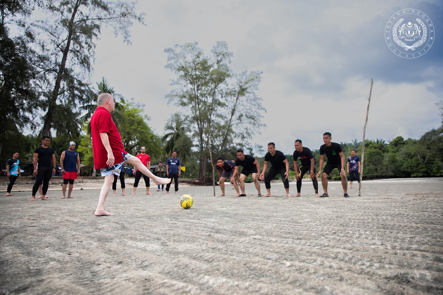 国家元首苏丹依布拉欣陛下的官方面子书,今日晒出陛下在沙滩踢球照片。