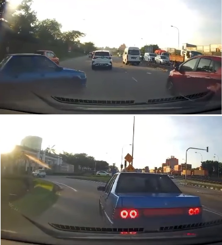 (新山14日讯)路霸上路,罔顾人命!青年司机乱出路口后,疑不满被女司机鸣笛示警,竟一路“玩针对”,多次故意踩煞车器,甚至突然插队,态度嚣张跋扈。