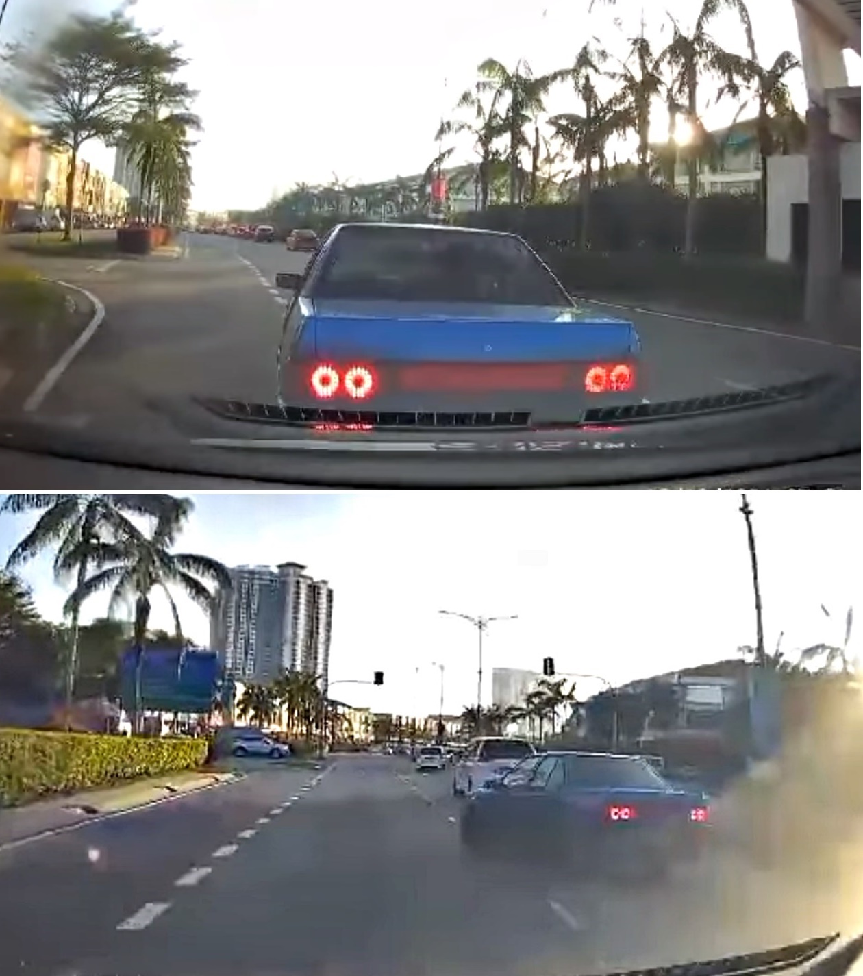 昨晚面书流传视频,在10月13日在旧甘拔士路往Setia Tropika Utama路段,一辆蓝色的Proton Iswara轿车危险驾驶。