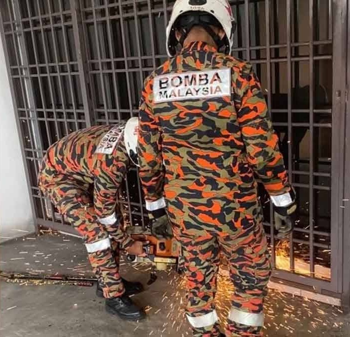至于消拯局指挥官Fauzi Che Deris 指出,当局于中午12时37分接获投报,抵达时屋子反锁。