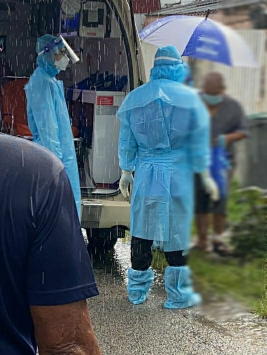 马华市议员陈珊珊事后也到场了解情况,告知“柔佛圈”目前确诊冠病的父母都已送往医院,因此明天义工会协助解决被隔离在家的儿子膳食。