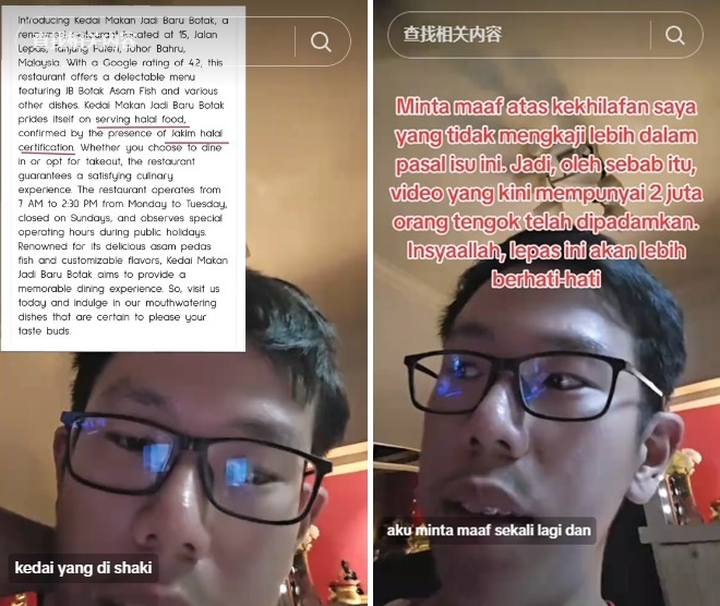 这番言论引起200万人次观看,也掀起舆论。事件越演越烈,青年于12月15日,再视频道歉,并澄清该餐馆有清真认证。