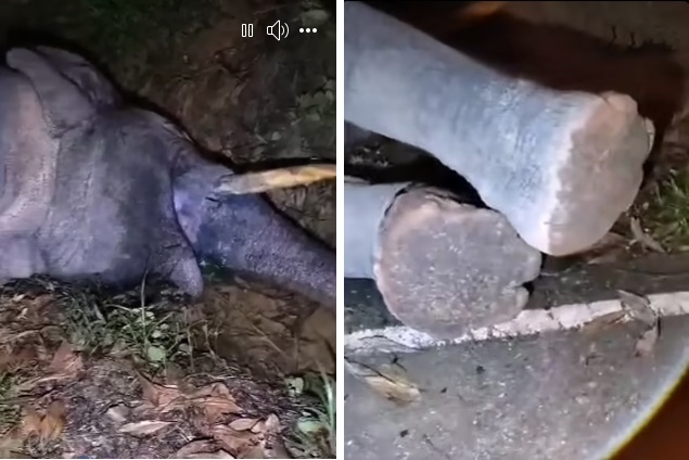 (居銮31日讯)一只野象卧尸路边,由于身上没有明显伤痕,疑被毒死。