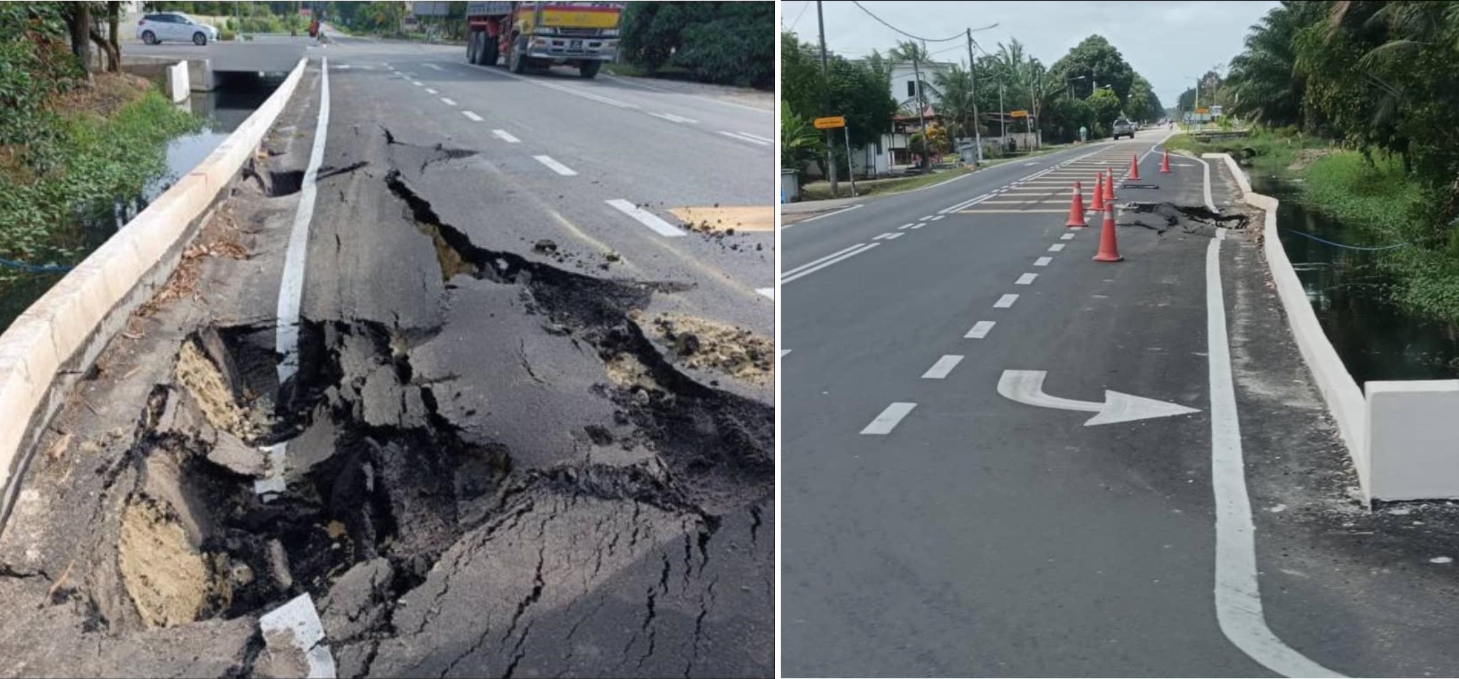 (麻坡6日讯)武吉巴西区内刚建好的道路,竟出现裂缝和地陷,承包商和罗厘都被列入“罪魁祸首”嫌疑。