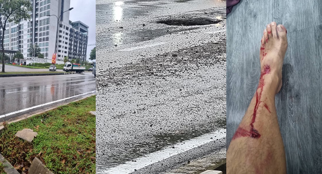 另外,1月11日,在茂奥斯汀的Mutiara Emas Utama路(Havona Residens公寓前)路段,也有摩哆骑士撞上路洞受伤。