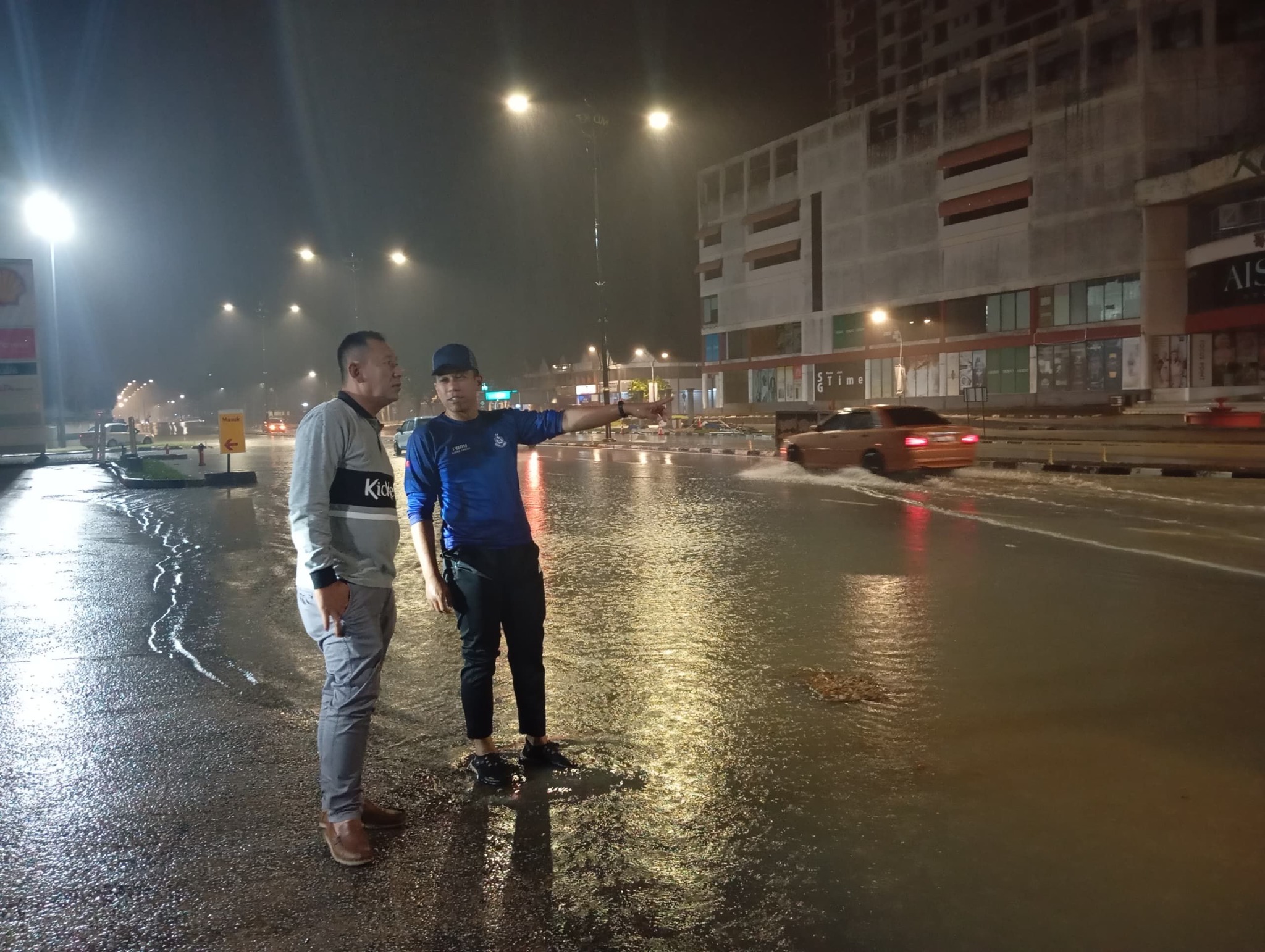 警区副主任Mohd Syamsuri、内部安全和公共秩序组主任Mohd Nur Hazwan亲往市区视察,随时待命应对水患加剧状况。