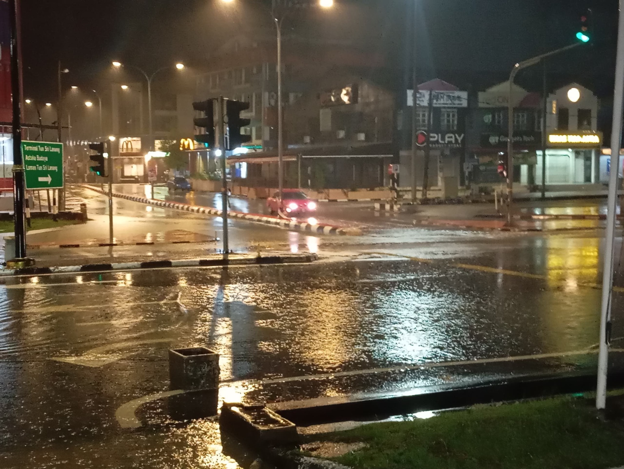 柔佛持续降雨,哥打丁宜警区今日(13日)凌晨1时50分发布消息,受大雨和涨潮影响,河水暴涨溢满。
