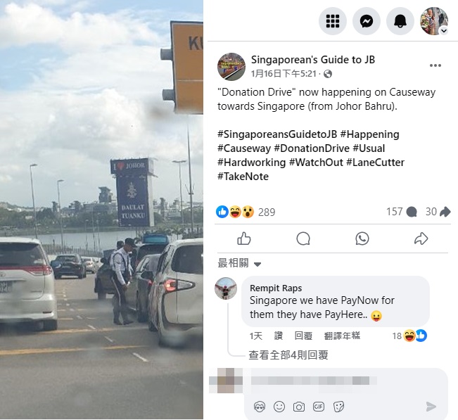 针对面子书专页“Singaporean’s Guide to JB”于日前上载图文,指一名交警向长堤司机索取贿款,引起大马警方关注。