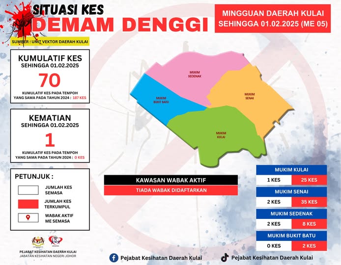 古来卫生局数据显示,截至2月1日,古来的骨痛热症有70宗,相较于去年同时期的187宗,明显减少。