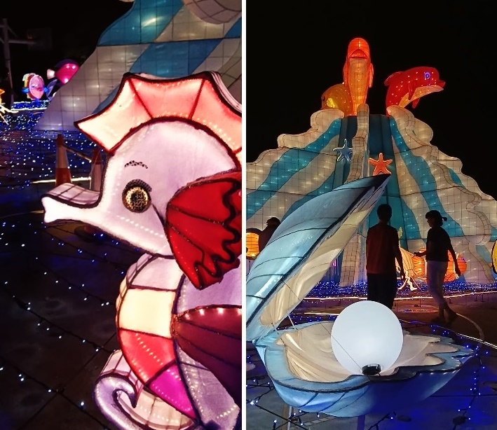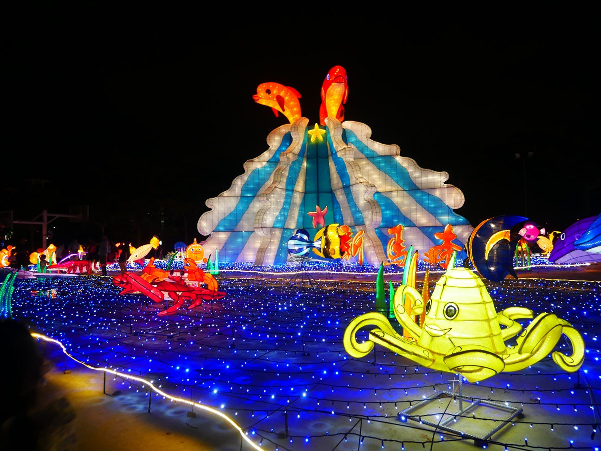 新马寺耗时半年时间,构思设计打造这个大型平安灯会,展现各类海底生物造型花灯,逗趣调皮,适合一家大小前往共赏。