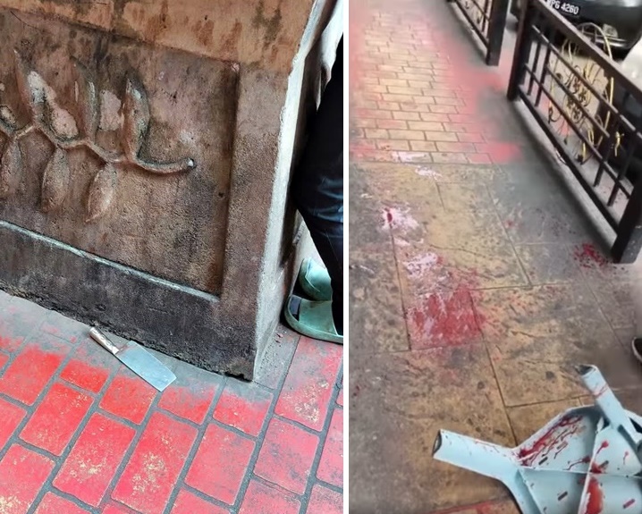 (新山11日讯)男子在新山闹市遭凶徒持砍肉刀伤及头部,地上血迹斑斑,引起路人围观。