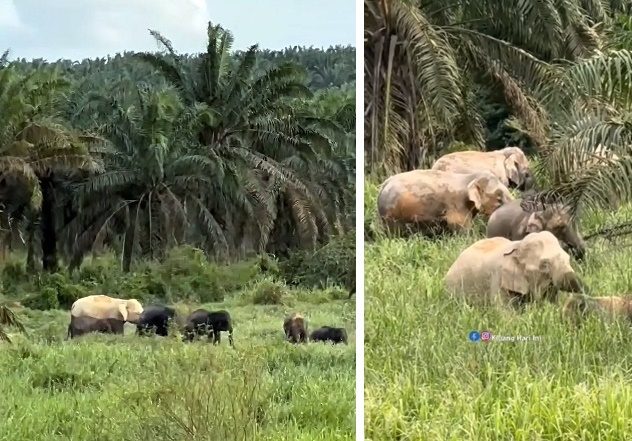 《今日居銮》(KHI)今日分享,在位于丰盛港─居銮16英里路段,不少民众抓紧机会,目睹一群野象游荡的情景。
