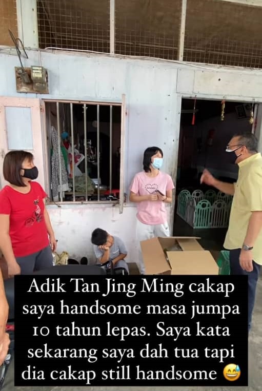 巫统森布隆区国会议员拿督斯里希山慕丁走访选区 遇上华裔女选民,称10年前远远看见他,觉得他很帅。