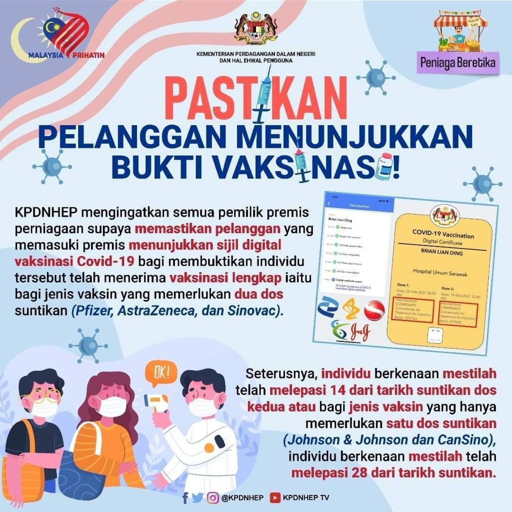 因此,如上领域业者须确保到访顾客,都出示已完成疫苗接种的证明。