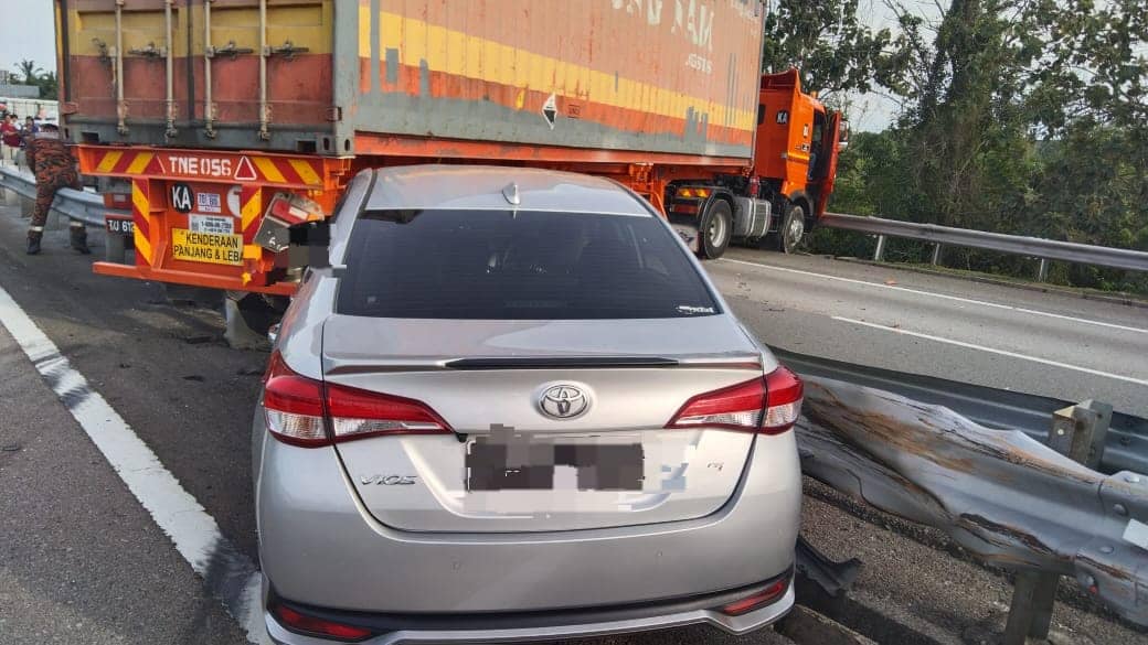 车祸涉及罗厘、丰田Vios轿车和国产Myvi轿车,造成2名女子受伤。